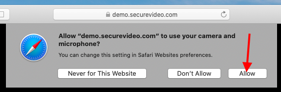 4. If this will be the first time you are connecting (or you have not previously saved permission), you will be prompted to give permission for One-Click to access your camera and microphone.